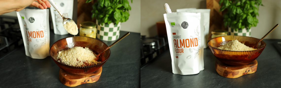 - Mąka migdałowa i ghee to źródła zdrowych tłuszczów i witamin rozpuszczalnych w tłuszczach.